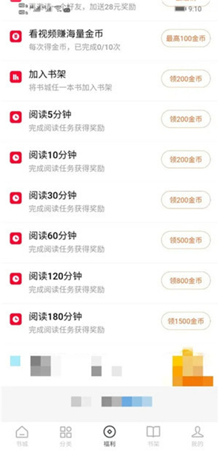 3、福利界面主要用于记录我们获取金币的情况,这是由于在客户端阅读小说能够赚取金币。