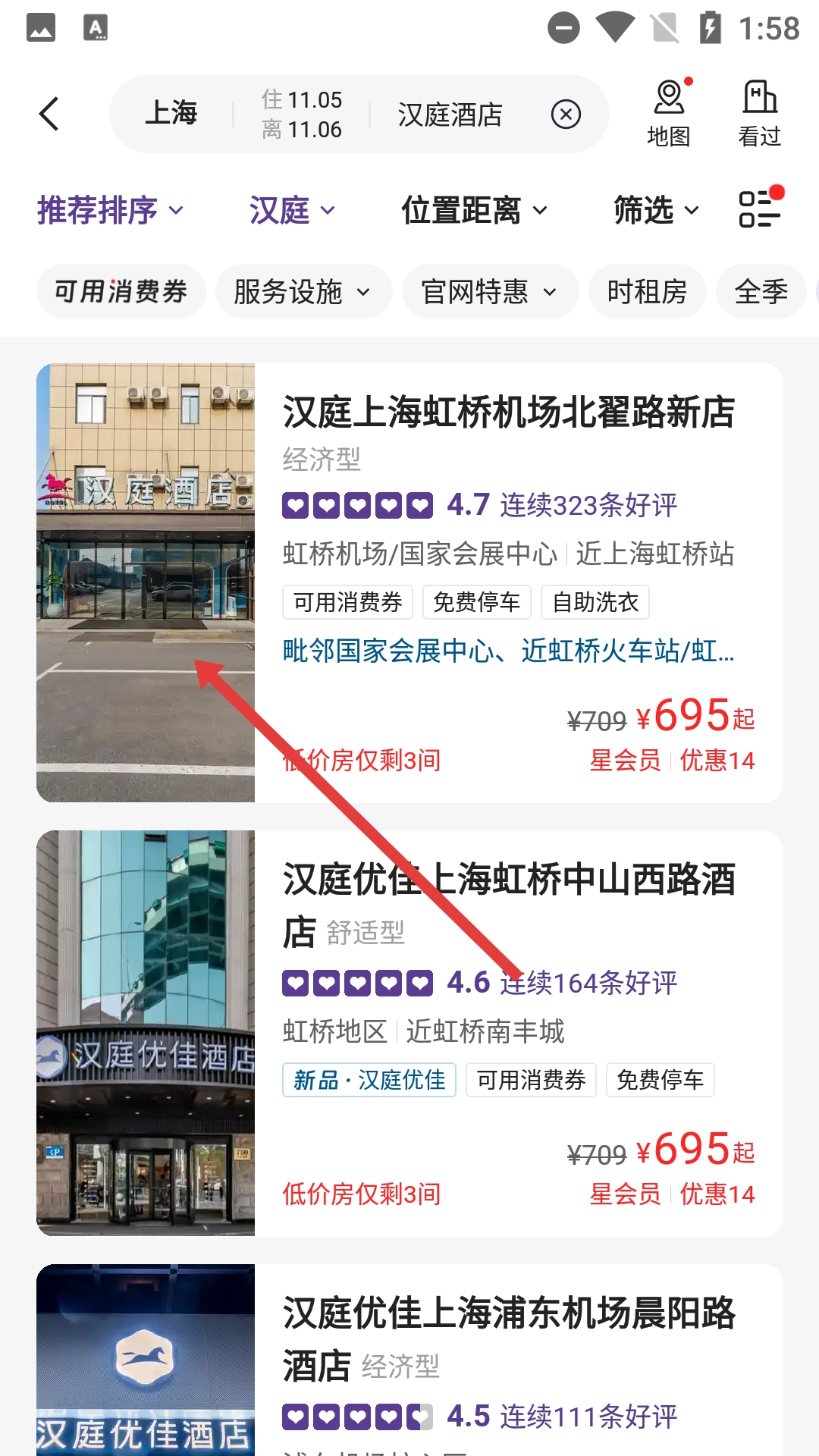 在酒店列表里,点击你想查看的那家酒店的图片,就能进入到该酒店的详情页面了。
