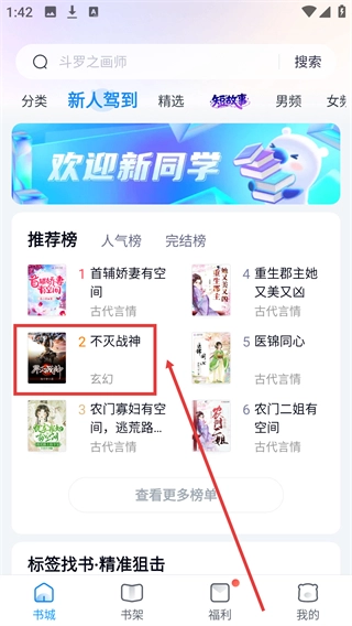 1、在书城推荐榜里,点击【不灭战神】条目,可进入该书详情页,查看其评分、简介等信息。