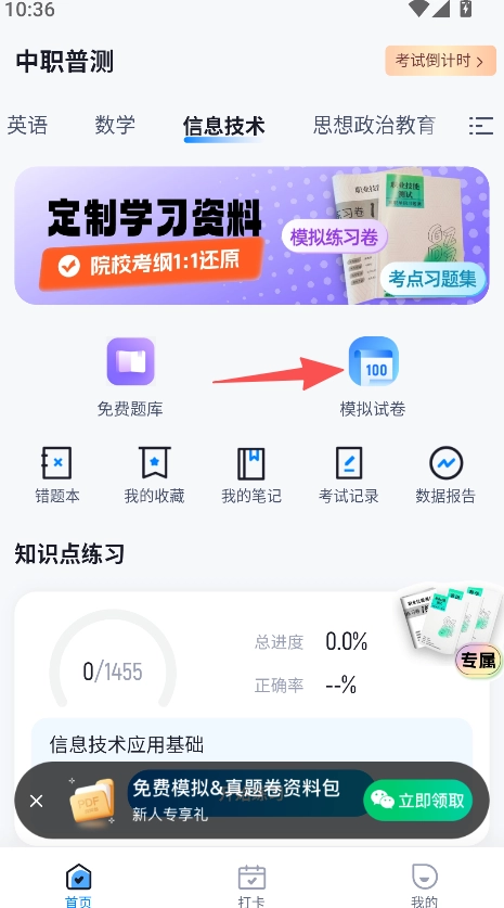 1、打开点击模拟试卷。