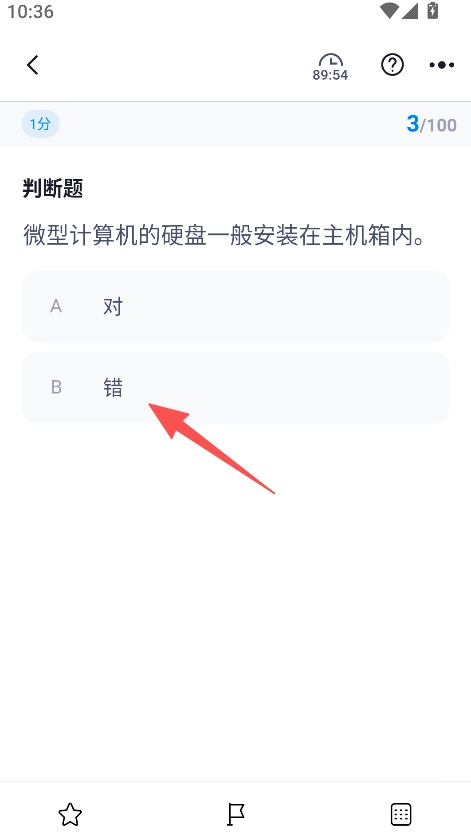 3、进入考试页面后,针对判断题等题型进行答案选择,完成答题操作。
