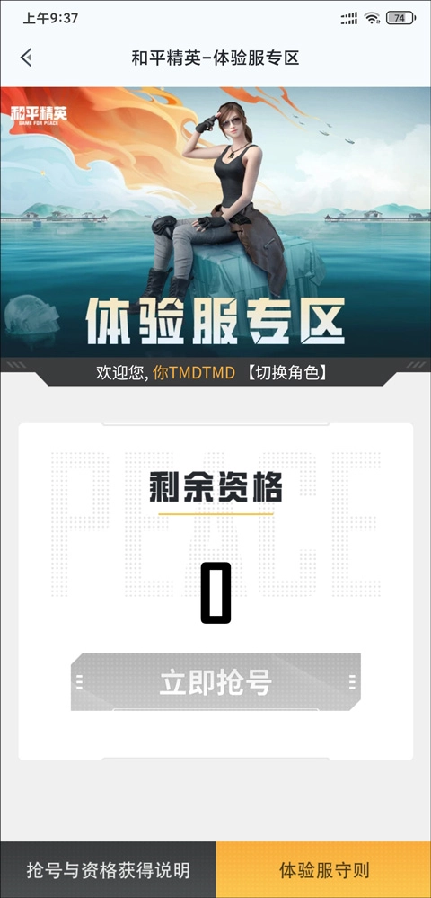 4、完成点击操作后,点击“立即抢号”按钮,若你具备参与资格,便有机会获取体验服的资格。