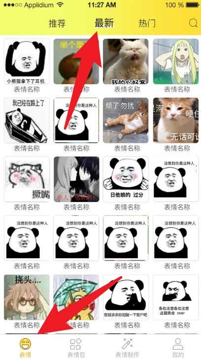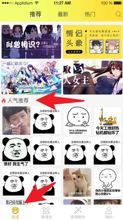 进入App后会默认停留在「表情」分页,你可以在推荐、最新、热门这几个分类里滑动浏览热门表情图。