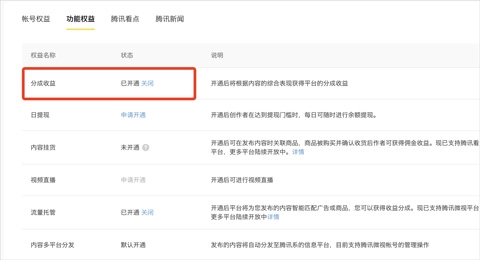 3、开通分成收益功能