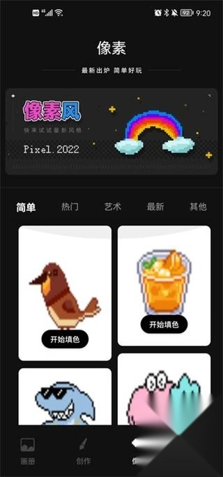 3、在像素板块里,你可以直接打开里面的画册开始涂色,这些画册都是像素风格的。