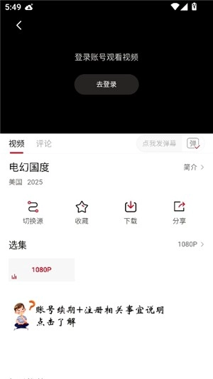 4、点击想看的影片,选择集数和播放源即可免费追剧