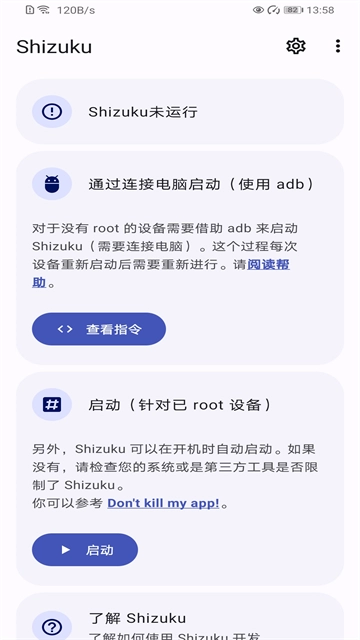 2、若你的手机已获取ROOT权限,直接授予Root权限就能正常启动;而后面两种开启方式,都需要先开启开发者模式,再给予USB调试权限。