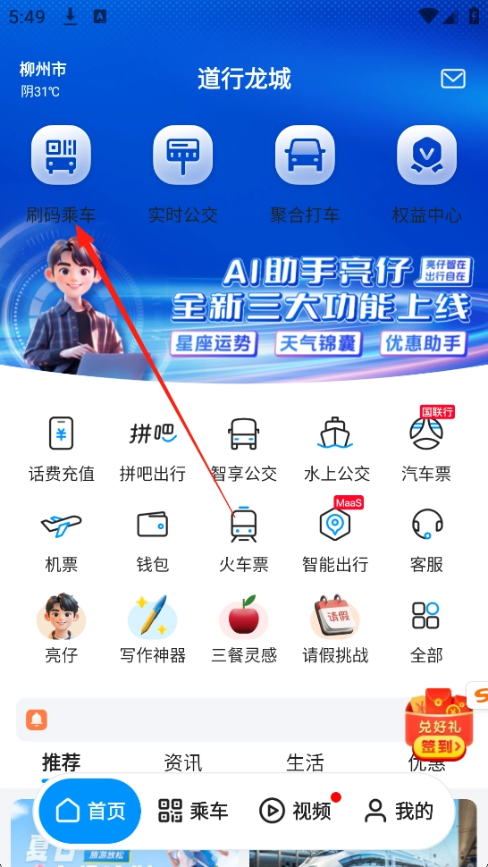 1、打开软件,登录之后用户就可以使用【乘车】功能开始乘车了