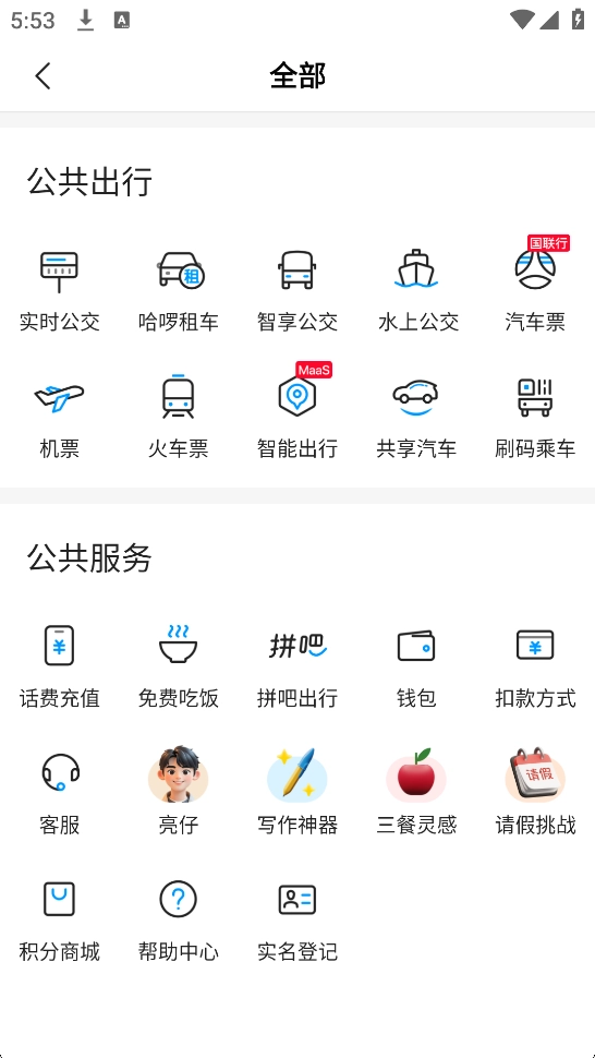 3、软件内拥有丰富的出行服务