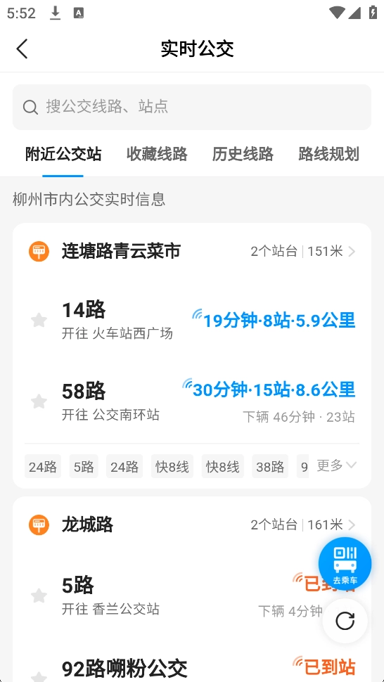 道行龙城App是一款智慧出行服务软件,主要为柳州市民提供便捷的公交乘车、实时查询、智能导航等功能,软件会根据用户设置的起点与终点为其推荐最快的路线方案,用户可以在出发前查询公交车的到站时间,把握时间