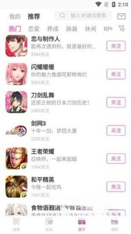 4、点击进入圈子板块,关注王者荣耀、和平精英这类热门内容,与其他用户一同交流探讨。