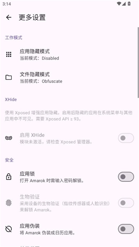 在 Amarok 的 更多设置 > 应用隐藏模式 里选择 Shizuku/Sui 模式。