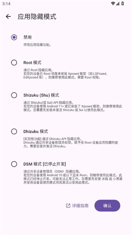 多模式免Root应用隐藏功能:可通过Shizuku、DSM等模式实现应用隐藏。