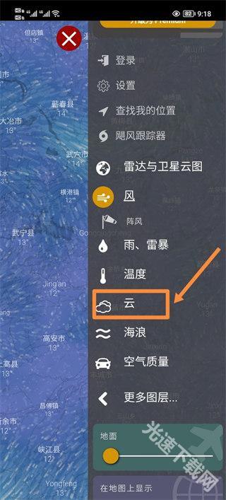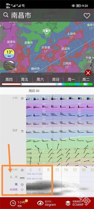 4、接着点击自己想要查看的地点,就能在下方看到云层的相关信息了。