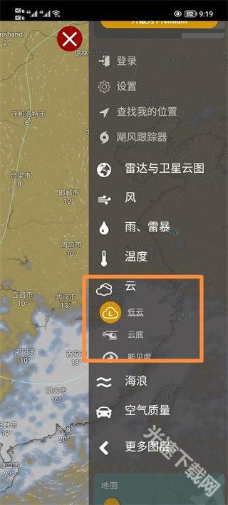 3、在云选项中,可依据实际需求选择低云功能或云底功能。