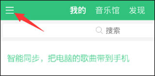 1、在本站安装qq音乐,然后进入到软件主界面之后,点击左上角箭头所指的标志,进入到更多页面。