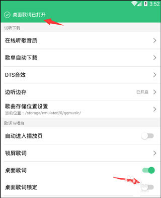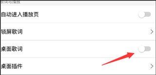 3、进入设置页面后,找到并点击桌面歌词右侧的标志,即可开启桌面歌词。