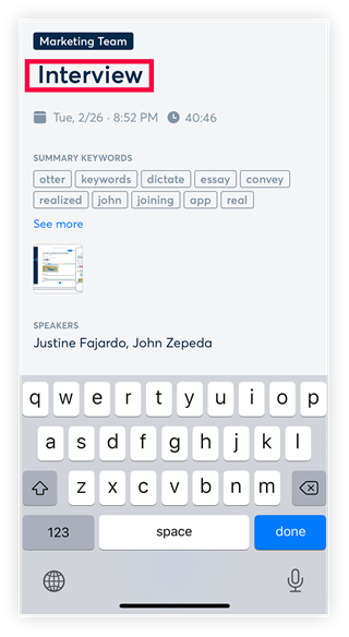 你能够修改扬声器的名称,点击人员图标就能更改姓名,要是你是Otter用户,还可以链接相关用户。