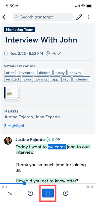 搜索文本,这样您就不必浏览整个音频