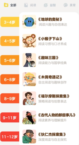 3.系统还贴心地为用户按不同年龄段孩子的阅读需求进行了书籍分类