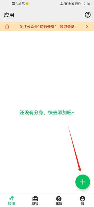1、幻影分身并打开,进入主页面点击“+”号