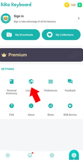 2、进入设置界面后,点击顶部的Language选项