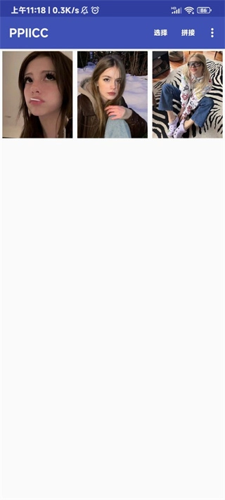 2、点击右上角的选择,选择你要进行拼接的图片;