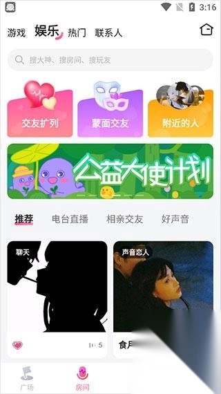 交友扩列、蒙面交友、附近的人、推荐、电台直播、相亲交友、好声音