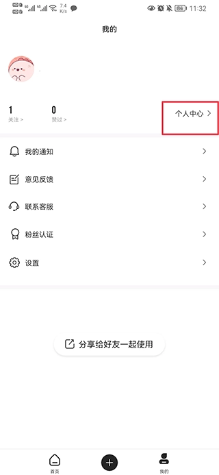 在我的界面中,点击个人中心