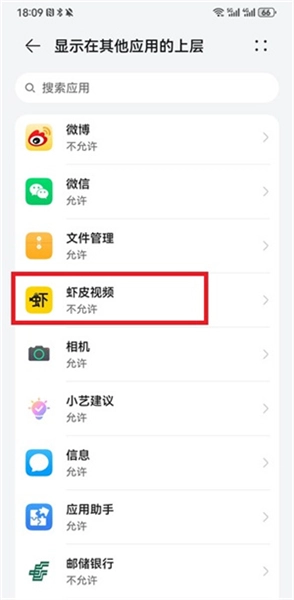 在授权页面,要找到【虾皮视频】并点击进入权限设置界面。