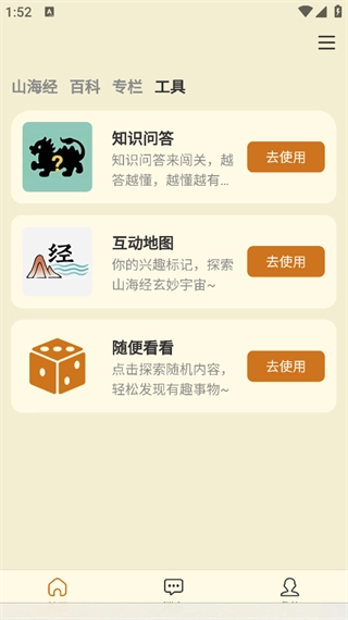 在主页面就能看到山海经百科图鉴、专栏、介绍等功能。