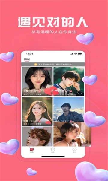 牵对是一款优质可靠的手机互动社交平台,配备在线配对与搜索功能,能轻松满足各地用户在线互动社交的需求。作为超简约且优质的脱单互动工具,它涵盖各类热门话题与社交活动,致力于打造舒适灵活的互动体验。