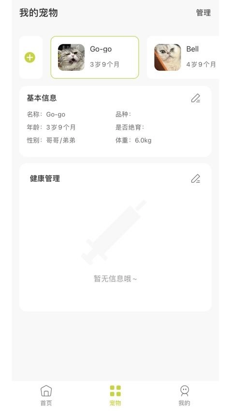 4、对宠物的基本信息记录下来,管理宠物健康。