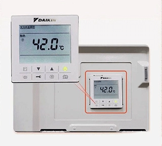 方法二:冷媒-水热交换器遥控器设置操作 打开冷媒-水热交换器下部盖板,通过点击【▲】【▼】按钮进行调节