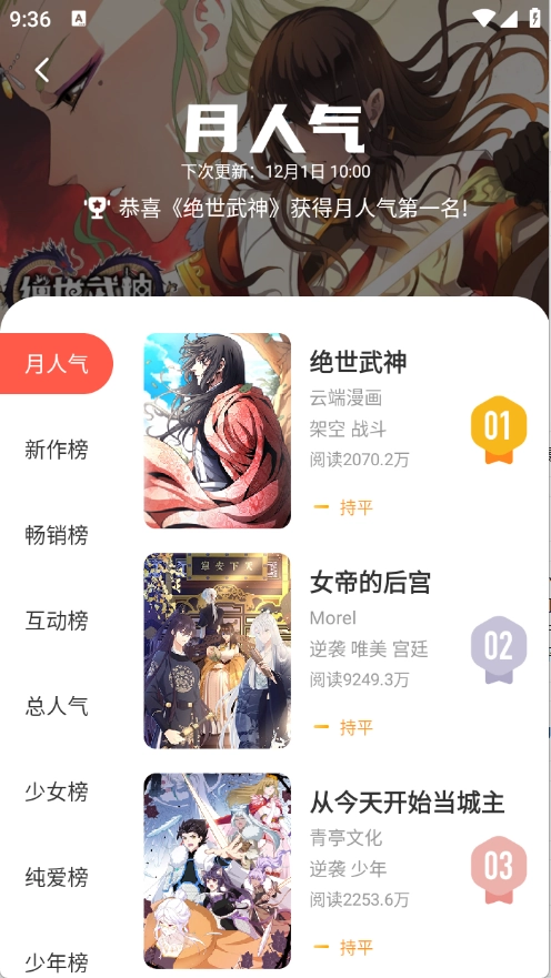 拥有庞大的漫画库,涵盖各种题材,如热血、冒险、科幻、恋爱、搞笑等。