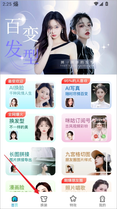 你可以先打开趣演App,然后在首页底部的导航栏里找到并点击“换装”这个功能入口。