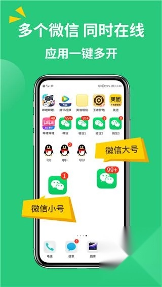 轻松完成双重开启,不用再为来回切换而烦恼,让你能自由分享、畅快聊天,只需简单安装就行,而且使用体验和源应用完全一样。