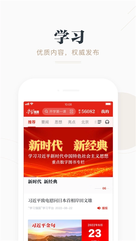 学习强国手机版主体内容与学习强国网站同步更新。