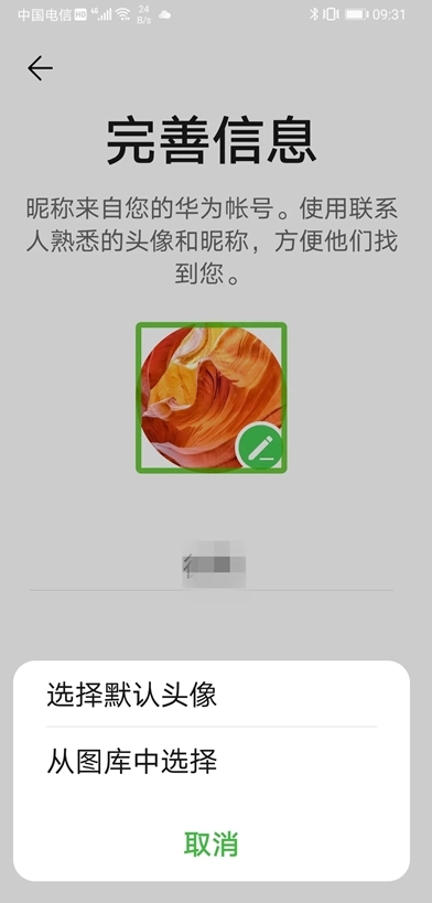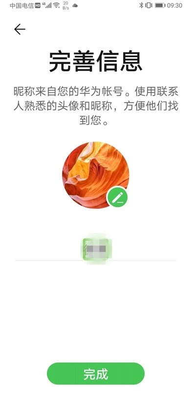 接下来要进行昵称的设置,我们在编辑框里输入想要的昵称。等投向和昵称都设置完毕后,点击下方的“完成”按钮就可以了。