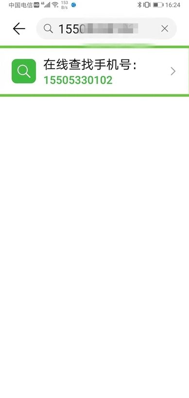 当输入未添加到联系人的号码时,下方会出现“在线查找手机号……”的提示,点击该提示后会展示此号码的名片页面。若该号码已开通畅连功能,则页面会显示用户的头像、手机号码及昵称,昵称下方设有“畅连视频”“畅连语音”“畅连消息”三个功能按钮;名片下方还会呈现电话号码,号码右侧配有“呼叫”和“发信息”两个操作按钮。