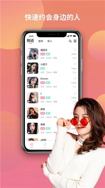 会优先为你推荐周边的优质用户,你能查看对方的实时距离以及最近的登录时间。