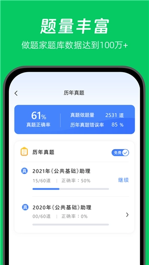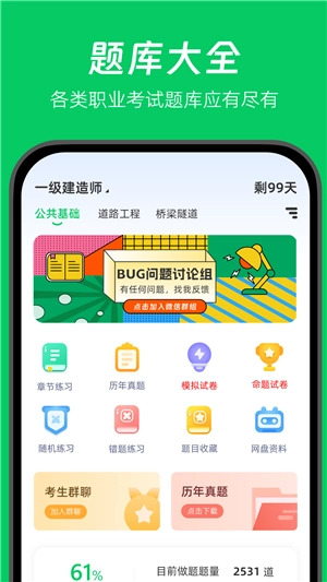 海量题库:包含丰富的职业考试题库,历年真题及详细答案解析,满足不同用户的备考需求。