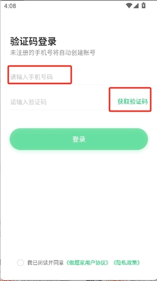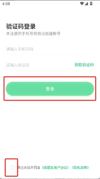 4、填写获取的手机验证码,勾选下方的协议,点击“登录”