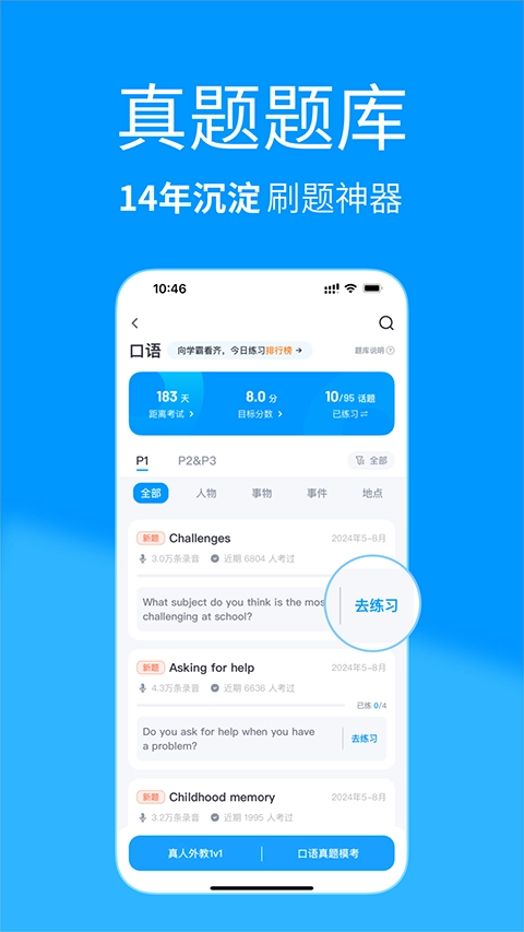 十年题库沉淀,按试卷、题型、话题等分类,助你高效提分。