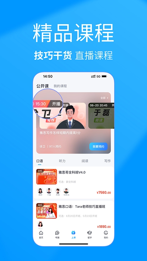 免费参加雅思听说读写四科大牛直播课,名师天天开讲。