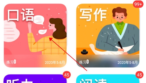 1、通过底部菜单栏进入练习页面,找到口语选项;