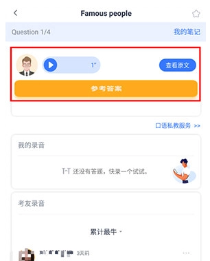 5、还可听取其他考友的答题录音并互相点评。