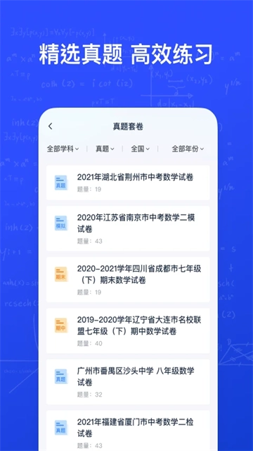 2、点击真题答卷,可以看到往年各科目的真题。