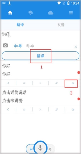 1、精准翻译发音:输入文字或语音,实现中粤互译,提供真人发音,跟读评分,确保发音准确无误。