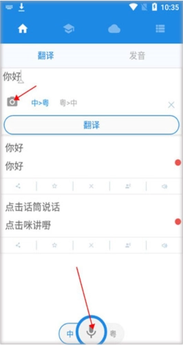 4、能直接在线录制,查询当前话语的粤语翻译,练习说粤语。